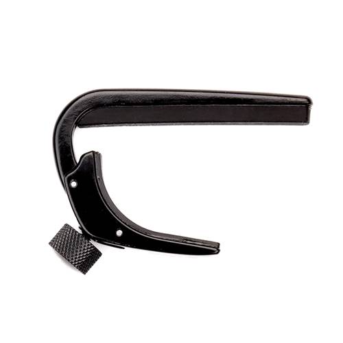 Designed specifically for classical guitars and instruments with flat (non-radiused) fingerboards, the Classical Pro Capo assures buzz-free, in-tune performance at any fret. The patented micrometer adjustment mechanism allows you to dial in the exact tension needed for clear ringing notes without excessive force in any position on the neck. This greatly reduces the need to retune your guitar during and after guitar capo use. The sleek aircraft grade aluminum construction of this premium guitar capo can withstand the toughest playing/touring schedule without adding any noticeable weight or obstruction to the instrument.