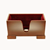 Box style hardwood cello stand securely supports instrument, amber gloss finish. Hole in bottom accommodated end pin. Red plush upholstered interior protects cello as it rests in stand.