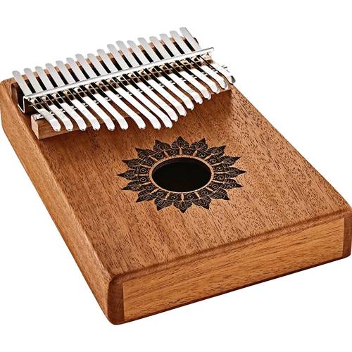 The Kalimba originally comes from Africa. It is a centuries-old instrument, also known as "Mbira" and "Sansa" or simply "thumb piano". There are metal reeds placed on a wooden resonance box, which are plucked with the thumbs to produce a metallically fine sound.