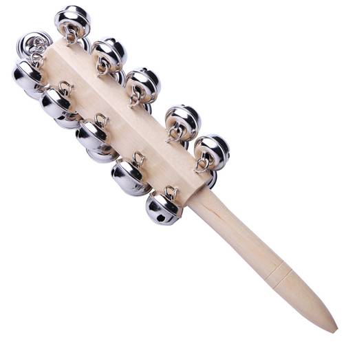 Handheld sleigh bells. Solid wood construction, 21 stainless steel bells.