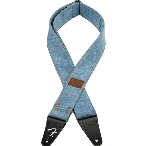 Fender Wrangler Riveted Denim Guitar Strap, Light Indigo