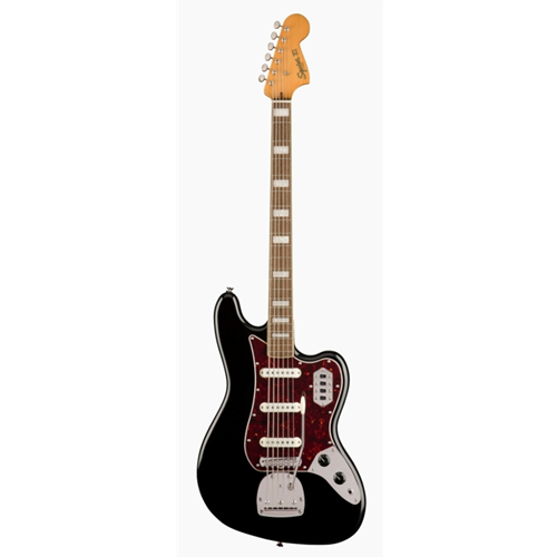 The Classic Vibe Bass VI is a faithful tribute to the secret weapon of producers and adventurous players that have dared to explore it since its original production from 1961 to 1975. Tuned an octave lower than a guitar and featuring a vintage-style tremolo, the Bass VI is the perfect companion to accompany any guitar or bass player into uncharted territory. Player-friendly features include a slim, comfortable "C"-shaped neck profile with an easy-playing 9.5"-radius fingerboard and narrow-tall frets, as well as a floating bridge with barrel saddles for solid string stability. This throwback Squier model also features 1960s-inspired headstock markings, rich-looking nickel-plated hardware and a slick vintage-tint gloss neck finish for an old-school vibe.