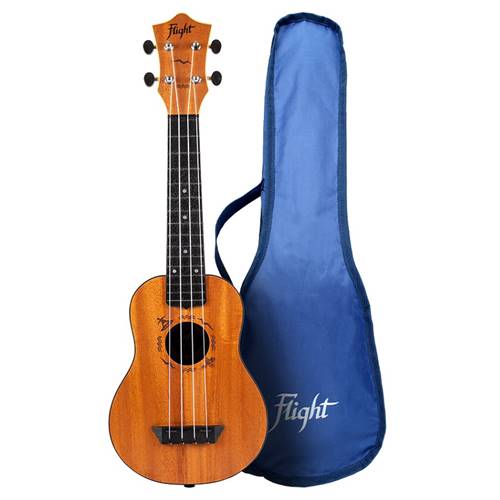 Flight Travel Ukuleles have proven to be one of the best and most robust ukuleles that you can purchase, and Flight continues to expand the number of choices that are available in the series. The Flight TUS53 Mahogany Soprano Travel Ukulele features a laminate mahogany top which will respond to any playing style and add a traditional “look” while doing so.Mahogany is the timeless darling of all ukulele luthiers worldwide. It is strong and full of rich tone and volume making it the king of tone woods. You won’t want to put this ukulele down, which is why we have adorned it with a beach life design that will compliment your days and nights at the waterfront.