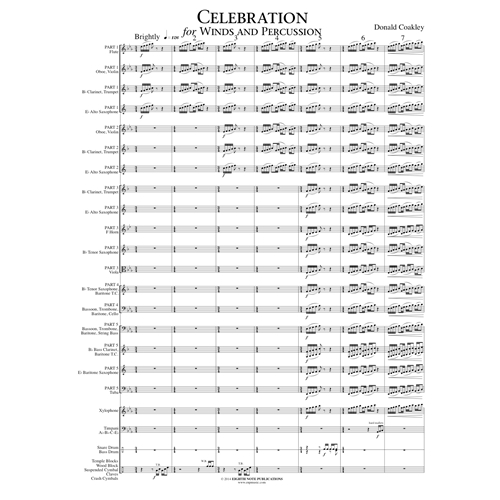 Full of rhythmic and melodic interest, this concert band original is a great addition to the repertoire. The tuneful scalar melody is passed throughout the ensemble and even low woodwinds and tubas have short sections of it. Percussion parts animate the driving rhythms and elegant writing in the winds. Celebration would make an excellent concert opener or at a contest.