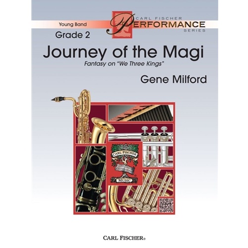 Journey of the Magi is a fantastical piece based on the well-known Christmas carol We Three Kings of Orient Are. After an introduction reflecting the nobility and Eastern origins of the travelers, there are three contrasting settings of the carol's verse and two of the chorus. The royal caravan then fades in to the distance as the three Kings continue their journey and search.
