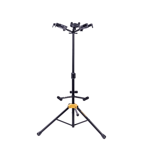 The HERCULES Triple Guitar Stand GS432B accommodates three instruments and features the foldable Auto Grip System (AGS) yokes, Specially Formulated Foam (SFF) rubber contacts, and adjustable back rests.