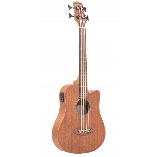 The sound of the M-Bass through an amp is uncannily like that of an upright string bass. You get big bass magic from an instrument the size of a "baby" guitar, shaped by the built-in piezo pickup's EQ module (with tuner!). The M-Bass's naytoh mini-dreadnaught cutaway body has an arched back and comfort-beveled top for playing comfort. Gold Tone's specially developed Aquila high-tension polymer strings are easy on the fingers and really bring out that bottom end.