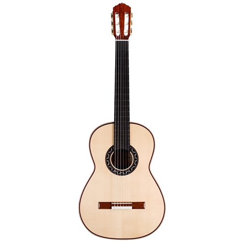 Domingo Esteso is considered one of the greatest Spanish luthiers of the 20th century, with a career that began in the 1890s, and continued through the 1930s. Created after extensive study of Domingo Esteso’s guitars, the Luthier Select Esteso mirrors the light weight and responsive volume produced by the Spanish luthier’s famous guitars. Available with a European Spruce or Canadian Cedar top, the delicately, hand carved spruce bracing works in conjunction with the premium quality top woods to recreate the immaculate, full tone synonymous with guitars built by Esteso himself. Solid Pau Ferro back and sides provide the tonal pallet of rosewood, but offer lighter weight and beautiful figure. Flamed Maple binding and a unique rosette with mother-of-pearl inlay, the kind of intricacy that was reserved for Esteso’s top of the line instruments, compliment the rich coloring of the Pau Ferro. The Estesto is finished using an ultra thin Polyurethane finish to protect the delicate instrument without impeding the vibration of the soundboard. Complete with an included Deluxe Humidified Archtop wood case, the Cordoba Esteso CD (Cedar Top) and Esteso SP (Spruce top) offer players a chance to enjoy the exemplary sound and feel of one of history’s premier luthiers.