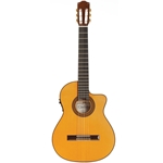 The GK Studio Limited offers a new spin on Córdoba’s ultimate gigging instrument. For a limited time only, the popular GK Studio will be available with striking ziricote back and sides. This highly-figured exotic wood has unique visual characteristics, while providing a rich, smooth sound that fills a room. Some flamenco players prefer exotic ziricote for a bassier and more robust tone in contrast to the bright, snappy sound of 'blanca' flamenco guitars which use cypress. However, any guitarist looking for a new tone will feel right at home. The GK Studio Limited has the same comfortable playability and low action as the GK Studio and like every Córdoba guitar, this model has a two-way truss rod built into the neck. Other premium features include a high gloss finish, clear flamenco-style tap plate, and Savarez strings.