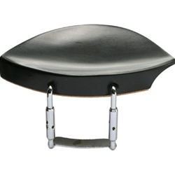 Kaufman style chinrest with a low, large plate and steel brackets. Available in ebony, rosewood, and boxwood for full size violins and violas.