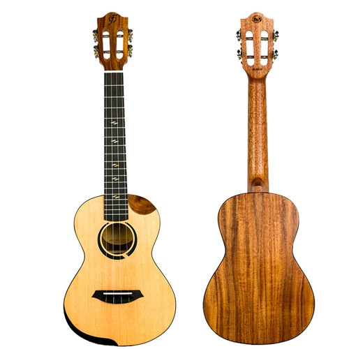 The Victoria is worthy of its royal title. The combination of the solid top spruce and resonant laminate acacia back and sides gives this instrument a lively, rich tone that will make you feel regal. With an armrest and unique round cutaway for extended fretboard access, advanced players will benefit from a comfortable and pleasurable playing experience. The Victoria is outfitted with an ebony fretboard and Japanese fluorocarbon strings, and is crowned with a stunning slotted headstock. On top of that, the Victoria includes an active pickup so that you are ready to perform on stage. With all of its attributes and striking features, the Flight Princess Victoria has everything an advanced player could desire.