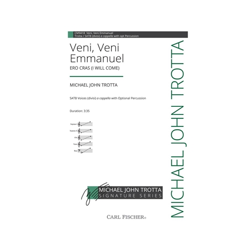 Trotta conceived this well-known Latin text as a dialogue between supplicants and the Creator, a combination of old and new. He masterfully juxtaposes a personal longing for something still to come with the steadfast assurance of something ever-present, yet not always seen. While the original theme is associated with the Christmas season, the wider theme of longing for something greater is universal to the human condition and allows this piece to be programmed throughout the year. A fitting piece for any concert, contest or festival.