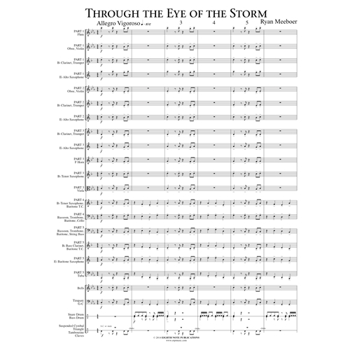 Through the Eye of the Storm is a piece full of suspense and intensity, describing the fury of a storm. It begins with strong dynamics, articulation and introduces the rhythmic drive that is carried throughout the entire piece.