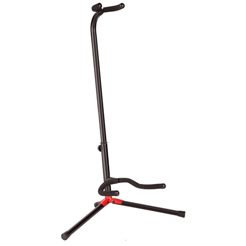 Fender’s adjustable guitar stand conveniently showcases your acoustic, electric or bass guitar. Height-adjustable neck yoke comfortably accepts various instrument sizes, lower support swivels to accommodate standard and offset body styles, metal construction is durable enough for road use, and padded yokes won’t harm nitrocellulose instrument finishes. Easily collapsible for convenient transport.