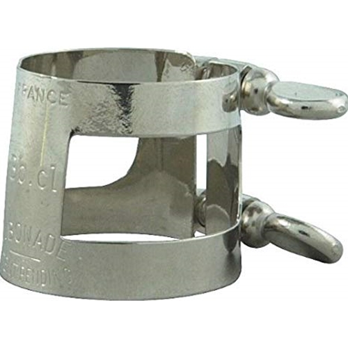 An inverted ligature, with metal strips to create even pressure on the reed without it being choked off with the metal bands. Invented by the great Daniel Bonade