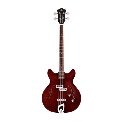 An iconic shape at an affordable price, Guild’s Starfire I Bass is a modern adaptation of the traditional Starfire Bass platform, exemplifying the features needed on a modern Hollowbody bass. Featuring a slimmed down, 2.4” body thickness, inward-shifted neck, short 30 ¾” scale length, and a 1 ½” nut width, the Starfire I Bass is a compact and accessible option for younger players, or those who want more freedom on stage. Stable tuning and easy adjustability are provided by the Tune-o-matic bass bridge, and the harp tailpiece adds a touch of Guild’s classic aesthetic, likening the bass to its upright ancestors.