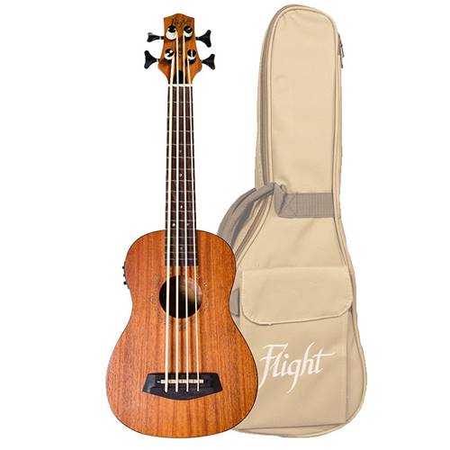 Get ready to rumble with Flight's new bass ukulele! The DUBS is a wonderful addition for both ukulele ensambles and pop bands alike, since it tunes just like a regular bass guitar – but it's half the size! Crafted in mahogany and featuring an active pickup, Flight's bass ukulele is a versatile little beast that will delight bass players of all ages. Includes Flight FU-T3 pickup and gig bag.